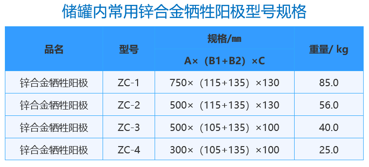 1.锌合金牺牲阳极自溶性小,电流效率高,阳极发生电流的自调节性能好。